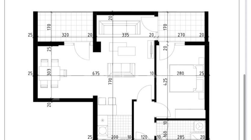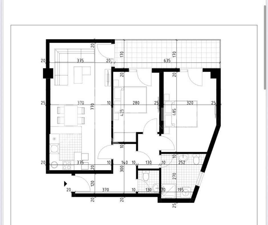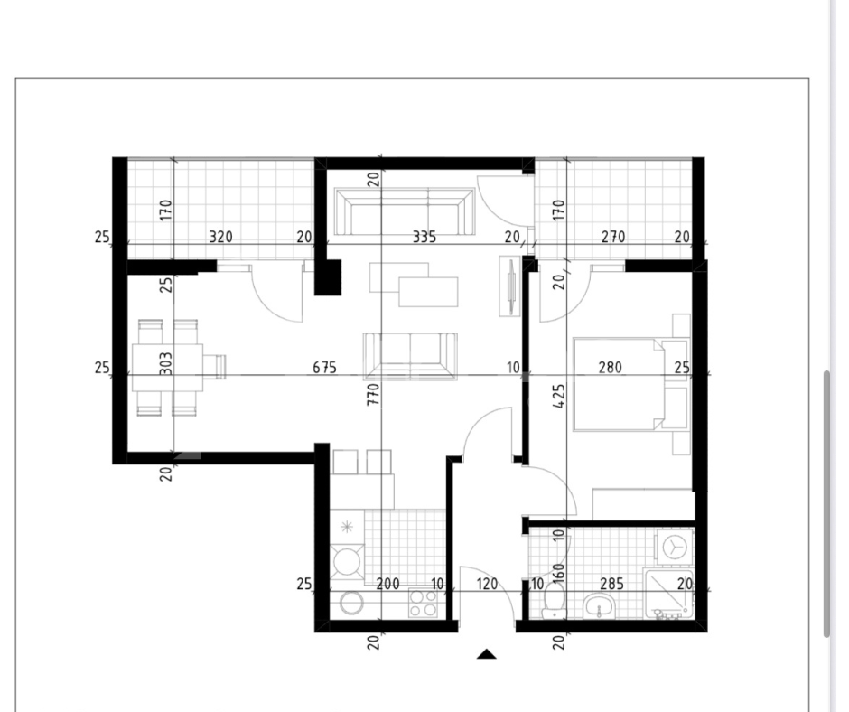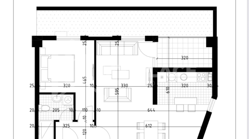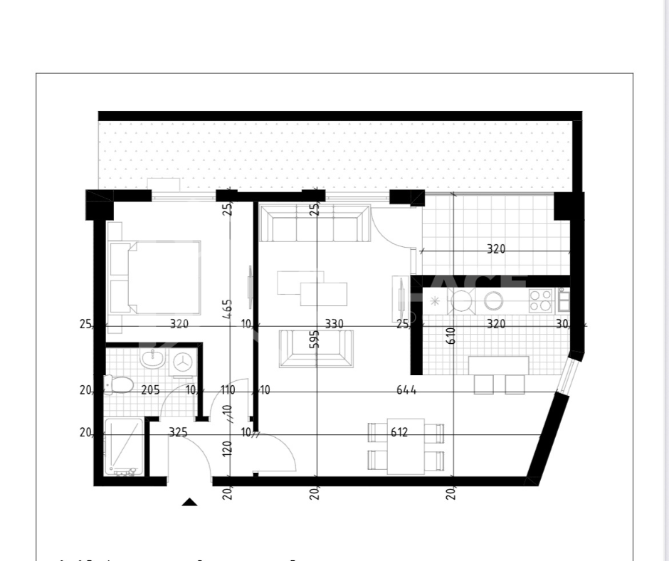 Jednosoban stan 54m2 na petom spratu sa dodatkom terase od 15m2.