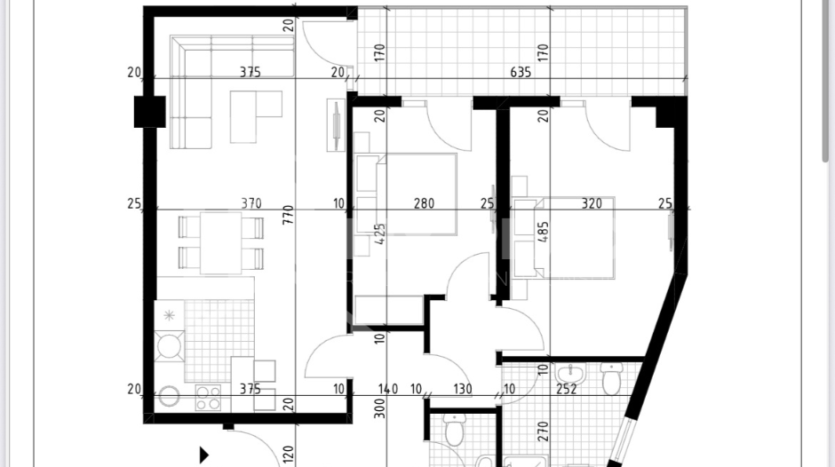 Dvosoban stan 82m2 na prvom spratu.